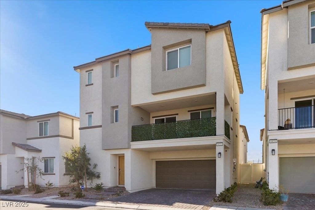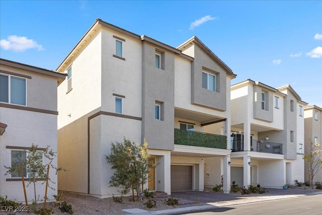 Welcome home to this 3-story modern residence located in a gated community. Featuring 4 spacious bedrooms, 3 baths, and 2 car garage, this nearly new built home offers exceptional design and energy efficient living with lease solar panels. First level features flexible space perfect for a home office, gym or guest suite. Second floor showcases an open-concept layout ideal for entertaining, complete with a bright and airy great room, dining area, and a contemporary kitchen with stainless steel appliances, granite countertops and sleep cabinetry. Retreat upstairs to primary suite featuring a walking closet and ensuite bath. Two additional bedrooms conveniently located nearby. Enjoy mountain and city views from your private yard and covered patio. This resort style community includes a pool, park, playground, BBQ area, basketball courts and guest parking. Conveniently located minutes from shopping, dining and easy freeway access. Welcome Home!