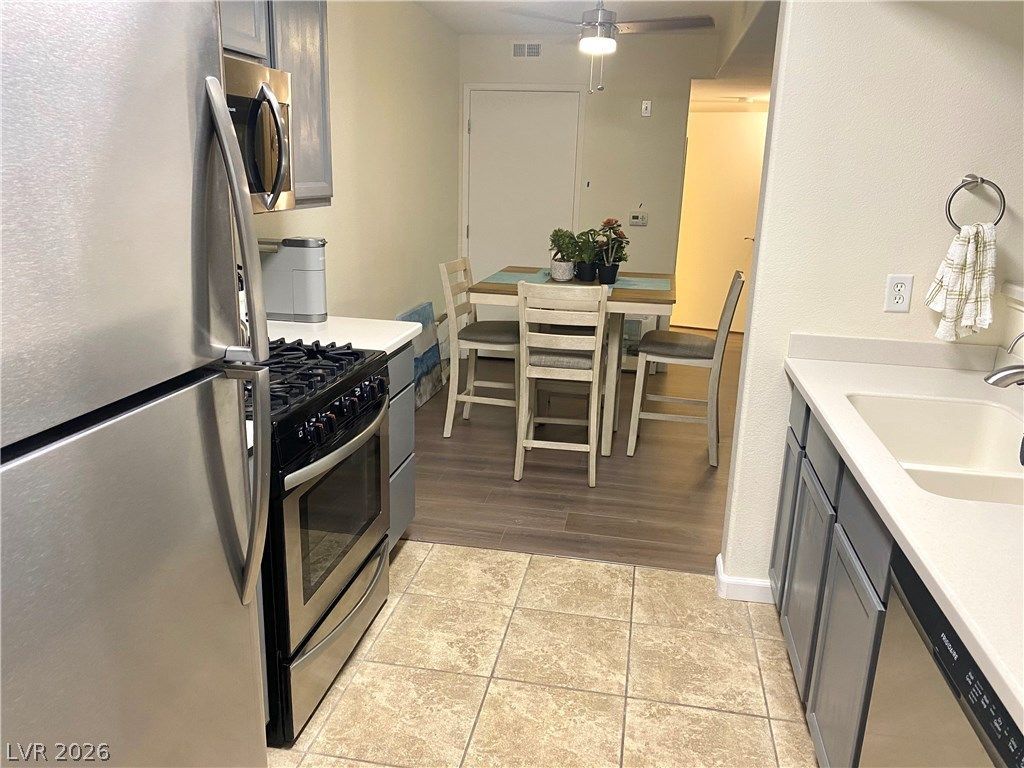Enjoy this fully-furnished, two bedroom two bathroom ground floor condo in gated Henderson community of Horizons at Seven Hills. Includes community facilities, pool, spa, and in unit washer and dryer. All utilities, linens, WiFi, and TV streaming service included. Nearby shopping, dining, freeway and parks.